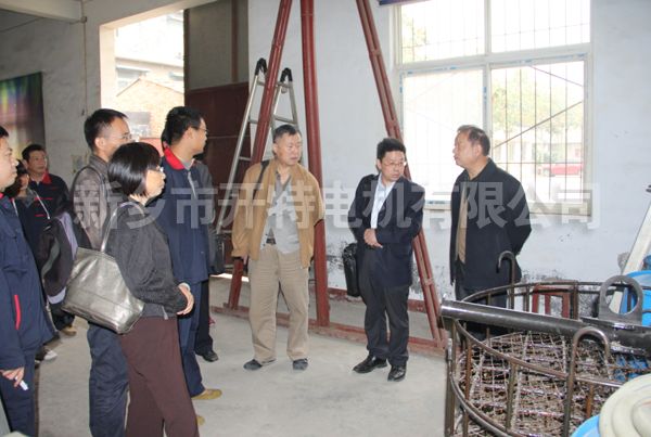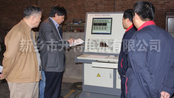各位領(lǐng)導在成品出廠試驗臺前檢測成品綜合性能