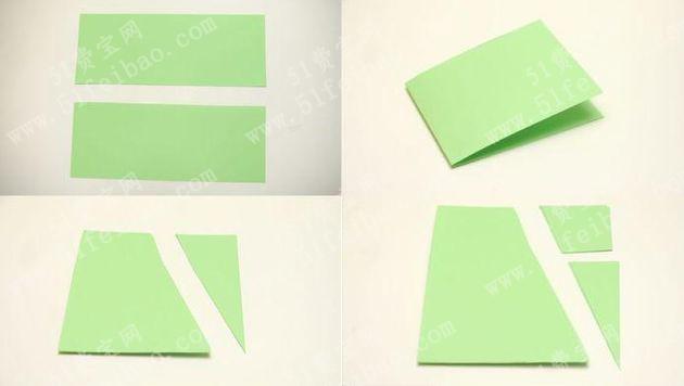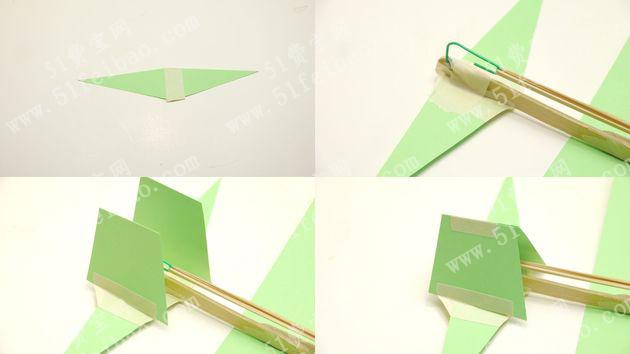 5、接下來利用色卡紙制作尾翼,根據(jù)下面的圖示順序進行操作即可。