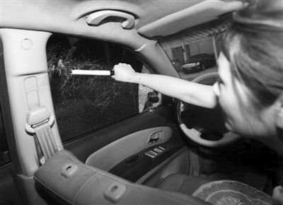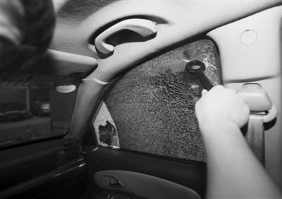 為了驗證這些方法,昨日下午,記者利用網上推薦的“汽車座椅上的頭枕”、“汽車內附工具中的拖車鉤”、鐵錘等工具,在一輛國產越野車內做砸窗試驗。實驗發(fā)現(xiàn),在用全力的情況下,男性也無法用頭枕擊破車窗,而鐵錘、拖車鉤等堅硬、重、易甩擊的工具,可以將車窗砸破;車玻璃四角比玻璃中心更易擊碎。