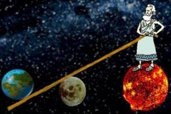阿基米德在天文學(xué)方面也有出色的成就。他設(shè)計(jì)了一些圓球,用細(xì)繩和木棒將它們聯(lián)接起來(lái)模仿日月和星辰的運(yùn)動(dòng),并利用水力使它們轉(zhuǎn)動(dòng)。這樣日食和月食就可以生動(dòng)的表現(xiàn)出來(lái)了。阿基米德認(rèn)為地球是圓球狀的,并圍繞著太陽(yáng)旋轉(zhuǎn),這一觀點(diǎn)比哥白尼的“日心地動(dòng)說”要早一千八百年。限于當(dāng)時(shí)的條件,他并沒有就這個(gè)問題做深入系統(tǒng)的研究。但早在公元前三世紀(jì)就提出這樣的見解,是很了不起的。