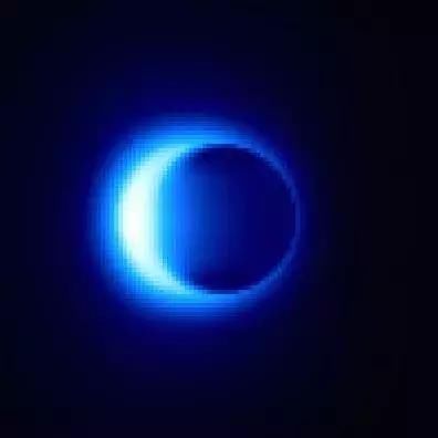 下圖是其中一種理論模型預(yù)言的銀心的黑洞陰影以及周?chē)h(huán)繞的新月?tīng)罟猸h(huán)。